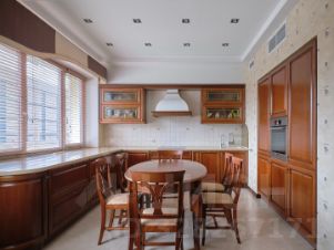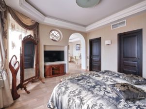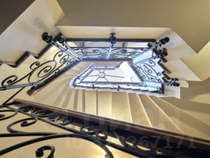 Изысканный интерьер вне времени выполнен с использованием дорогостоящихи натуральных материалов. Мраморную лестницу с художественной ковкой венчает стеклянный купол, который пропускает естественный свет.