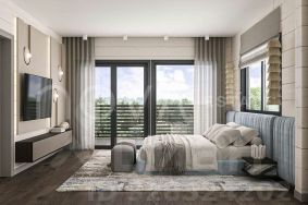 Второй этаж — приватная семейная территория. Она включает изолированную мастер-спальню с гардеробной и собственной террасой, а также три детские комнаты.
