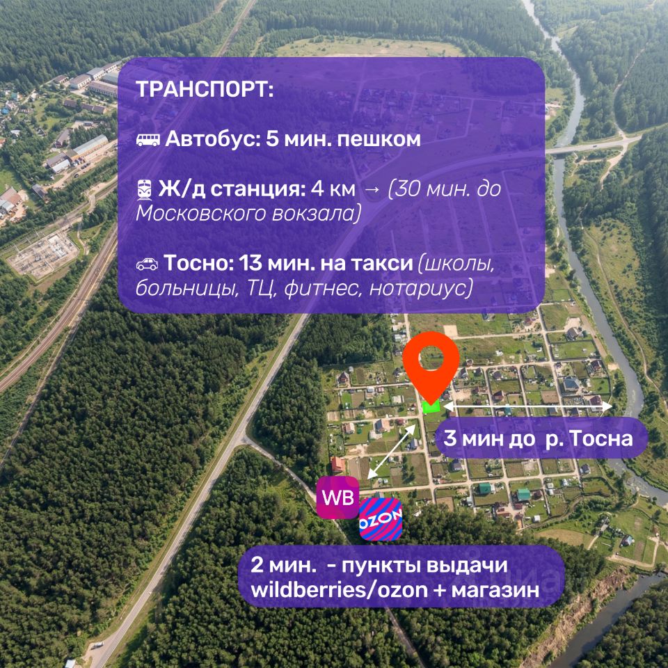 • Удобное транспортное сообщение в 4 км от посёлка находится ж/д станция Саблино, до Московского вокзала 30 мин. на электричке. До г. Колпино 20 мин. До автобусной остановки 5 минут пешком. Автобус идет до вокзала 10 мин., курсирует ежедневно. Яндекс такси. До районного г. Тосно 15 км., где есть школы, дет. сады, бассейн Лазурный, фитнес-центры, торговые центры, салоны красоты, бизнес-центры, нотариусы, поликлиника, роддом, банки, рынок со свежими и натуральными овощами, фруктами и прочим продовольствием. -Недалеко от посёлка расположены Соляные пещеры, Саблинские водопады и конный клуб.