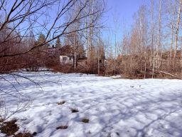 Угловой участок, очень зеленый, растут березы и кустарники. Есть свободная от растительности территория для благоустройства участка. Под плодородным слоем глина. Есть заезд для автомобиля и место для парковки. Подключено электричество 5 кВт. Категория земель позволяет сделать постоянную регистрацию после постановки дома на кадастр.