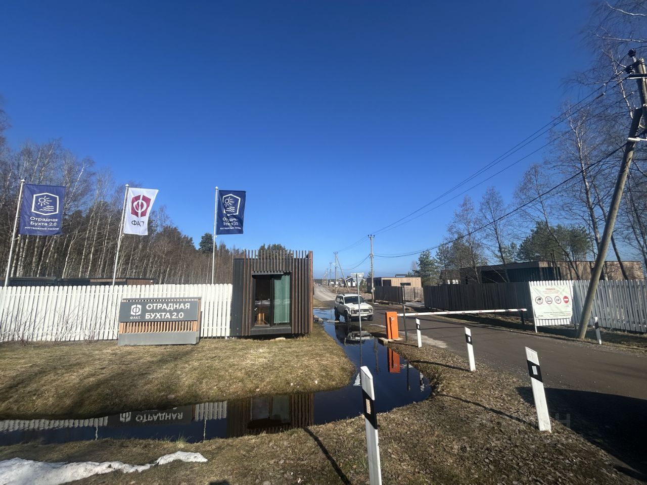 Поселок с удобствами: центральный водопровод, электричество 15 кВт, освещение, интернет, КПП, охрана, видеокамеры, детская площадка, спортивная площадка, асфальтирование.