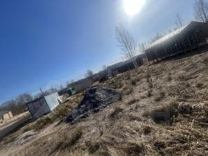 Участок правильной формы, поднят, установлена бытовка. Отсыпан въезд на участок и асфальтированная парковка для гостей.