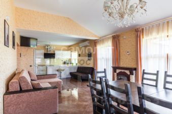 Кухня-столовая — полностью оснащена: плита, вытяжка, духовка, микроволновка, холодильник, посудомоечная машина, электрокамин, Смарт-ТВ.