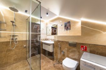 Санузел с туалетом, душевой и стиральной машиной.