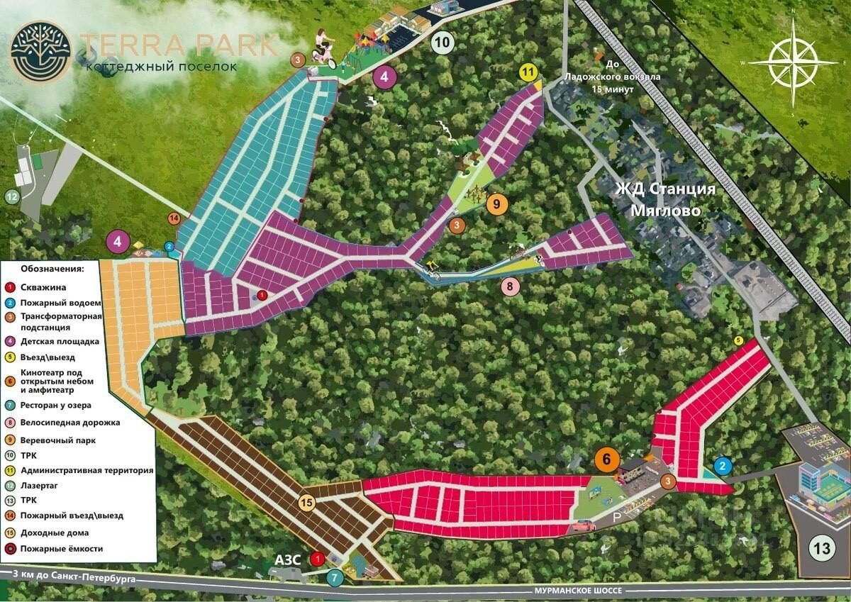 Предлагается к продаже единым лотом 14 земельных участков общей площадью 9 975 кв. м в экологически чистом и перспективном районе Ленинградской области - Всеволожском, идеально подходящем для реализации проекта коттеджного посёлка Terra Park. Все участки имеют статус ИЖС (индивидуальное жилищное строительство) и площадь - от 6 до 8 соток, что позволяет гибко проектировать застройку под разные форматы - от эконом-класса до премиум-сегмента. Преимущества локации Terra Park - это территория с огромным потенциалом, сочетающая природу, тишину и близость к городу: Всего 2 км до КАД - ключевое преимущество для беспрепятственного выезда в Санкт-Петербург. 20-25 минут на общественном транспорте до станций метро "Улица Дыбенко" и "Проспект Большевиков". 10-15 минут на автомобиле до ближайших станций метро. 5 минут пешком до железнодорожной станции Мяглово - за 15 минут можно добраться до Ладожского вокзала. Развитая транспортная сеть: новые магистрали, регулярное автобусное сообщение, удобные подъездные пути. Экология и окружение Район окружён сосновыми лесами, чистым воздухом и природными водоёмами, что делает его одним из самых востребованных для загородного проживания. Это место подходит тем, кто хочет жить в гармонии с природой, но оставаться в шаговой доступности от города. Инженерная инфраструктура - продумана до мелочей Вся инженерная инфраструктура полностью запланирована и согласована в проектной документации. Это означает, что вы получаете не просто землю, а готовую площадку для быстрого и экономически эффективного запуска строительства: Магистральный газ - проходит по границе участков, подключение предусмотрено по утверждённой схеме. Электроснабжение - запланировано 15 кВт на каждый участок, есть технические условия и проект подключения. Водоснабжение - предусмотрено строительство двух артезианских скважин для централизованного водоснабжения всего посёлка. Канализация - заложена схема локальных очистных сооружений или централизованной системы (по выбору застройщика). Высокоскоростной интернет - оптоволокно, подключение запланировано по маршруту вдоль основных проездов. Дорожная сеть - разработана схема внутренних проездов, тротуаров и парковочных зон с соблюдением всех норм СП 42. 13330. 2011. Вся проектная документация по инженерным сетям и благоустройству уже готова, что позволяет минимизировать сроки и риски при реализации. Инвестиционная привлекательность Участки находятся в зоне активной девелоперской активности - спрос на загородную недвижимость растёт. Готовый генплан и утверждённая концепция инфраструктуры - вы экономите на проектировании. Возможность реализовать проект "под ключ": от строительства коммуникаций до продажи готовых коттеджей. Высокая маржинальность - стоимость земли с перспективой инфраструктуры значительно ниже рыночной стоимости участков после подведения коммуникаций