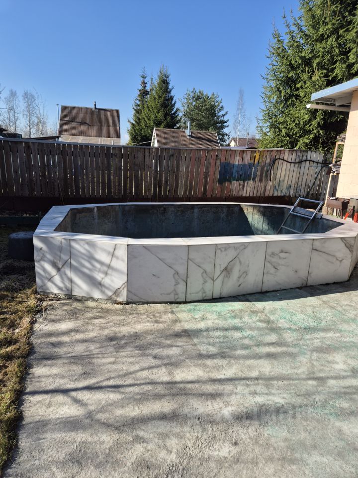 Сделан бетонный бассейн на 18 кубов воды с глубиной 1,8 м.