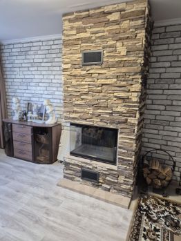 На первом этаже расположены кухня 17,8 кв.м , комнаты 27,7 +10,4 +10,2 кв.м. ; коридор 15,4 + прихожая 6 кв.м.; совмещенный санузел 5,4 кв.м ; бойлерная 4 кв.м, действующий камин. Отопление - газовый котел.