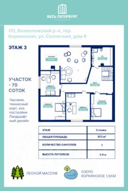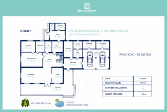 ЭКСКЛЮЗИВНОЕ ПРЕДЛОЖЕНИЕ! Премиальный трехуровневый коттедж в закрытом поселке Ленинградской области. Пространство, созданное для жизни большой семьи. Это не просто дом. Это родовое гнездо, где каждый уголок дышит основательностью, любовью к деталям и уважением к семейным традициям. Я не буду просто перечислять квадратные метры - я расскажу вам историю места, где захочется растить детей, принимать друзей и чувствовать себя в полной безопасности. Представьте: вы въезжаете в поселок, где безопасность - это не просто слово, а абсолютное спокойствие. 36 камер видеонаблюдения по периметру вашего участка и полный онлайн-контроль въезда позволяют забыть о суете, даже находясь в командировке или путешествии. Здесь, на участке в 70 соток, время течет иначе. Выйдя из машины, вы не сразу захотите заходить внутрь. Вас встретит настоящий парк: 150 туй, 4 голубые ели, создающих вечнозеленые аллеи, более 100 кустов роз и пышные гортензии, которые благоухают летом. Аллеи ведут к уютной часовне, детской площадке и полноценной баскетбольной площадке с профессиональным покрытием - здесь дети будут собирать друзей не на компьютерные игры, а на активный спорт. Сердце дома - его пространство. Здесь 972 квадратных метра распределены с удивительной мудростью. Вы заходите в большую гостиную с каминным залом. Это место, где по вечерам будет собираться вся семья, а из панорамных окон открывается вид на ваш сад. Отсюда вы выходите на широкую террасу, чтобы пить утренний кофе, слушая пение птиц. В доме 11 спален, многие из которых с гардеробными и 7 санузлов. Здесь найдется место для всех, и для шумной детской компании, и для тишины взрослых. Но самое интересное - в функциональности, дом полностью готов к проживанию: - Два рабочих кабинета с мебелью (остается в подарок) - вы сможете работать из дома, не мешая друг другу. - Настоящий кинозал с профессиональной шумоизоляцией, кино-проектором и экраном. Представьте, как здорово здесь будут проходить домашние кинопремьеры. - Бильярдная в американском стиле прошлого века - стильное место для мужских посиделок и соревнований. - Тренажерная зона с сауной и настольным теннисом - здоровье и бодрость без выезда из дома. - Две кухни - одна парадная с итальянским гарнитуром и техникой SMEG для кулинарных шедевров, вторая - для персонала с профессиональным оборудованием Unox, чтобы быт оставался незаметным. - Теплый гараж на два автомобиля с кладовками. Я обращаю ваше внимание на качество. Этот дом строили не на продажу, а для себя (1 собственник, более 5 лет). В основании - кованая лестница с мраморными ступенями. Полы из натурального мрамора (100 метров!), итальянская сантехника, фасад из натурального клинкерного кирпича, кровля из испанской черепицы - это материалы, которые не теряют своей красоты со временем. Инженерия здесь на уровне премиального отеля: газовый котел отопления (при этом в поселок заведен природный газ, газификация в 2026 г, но уже есть автономный газгольдер), система кондиционирования, мощная водоочистка 2000 куб/час, которая дает кристально чистую питьевую воду из скважины 100 метров, своя локальная канализация и 40 кВт электроэнергии. Для отдыха или уединения есть гостевой дом из клееного бруса (80 кв.м) предназначался для персонала, два парника и аккуратный сарай. Расположение дарит вам лучшее из двух миров: вы находитесь всего в 