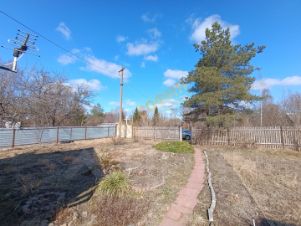На участке: яблони, вишня, барбарис, калина, смородина (красная и черная), малина, клубника. Клумбы с многолетниками. Разработанные грядки.