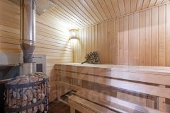 • Стены: брусья сечения 200х150 мм2. Облицовка: многослойные фасадные панели Docke- обеспечивают защиту от внешних воздействий + Утепление: рокфасад, 100 мм — минимизация теплопотерь и комфорт в любое время года