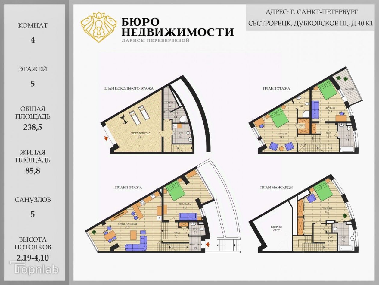 — Общая площадь 238,5 м², жилая — 86 м²