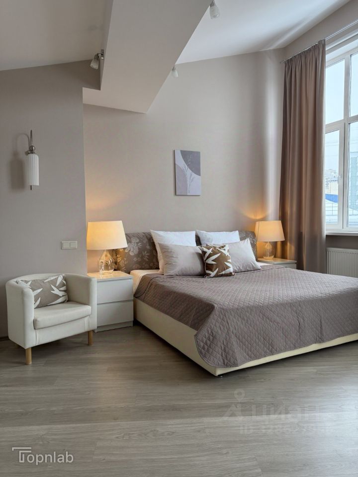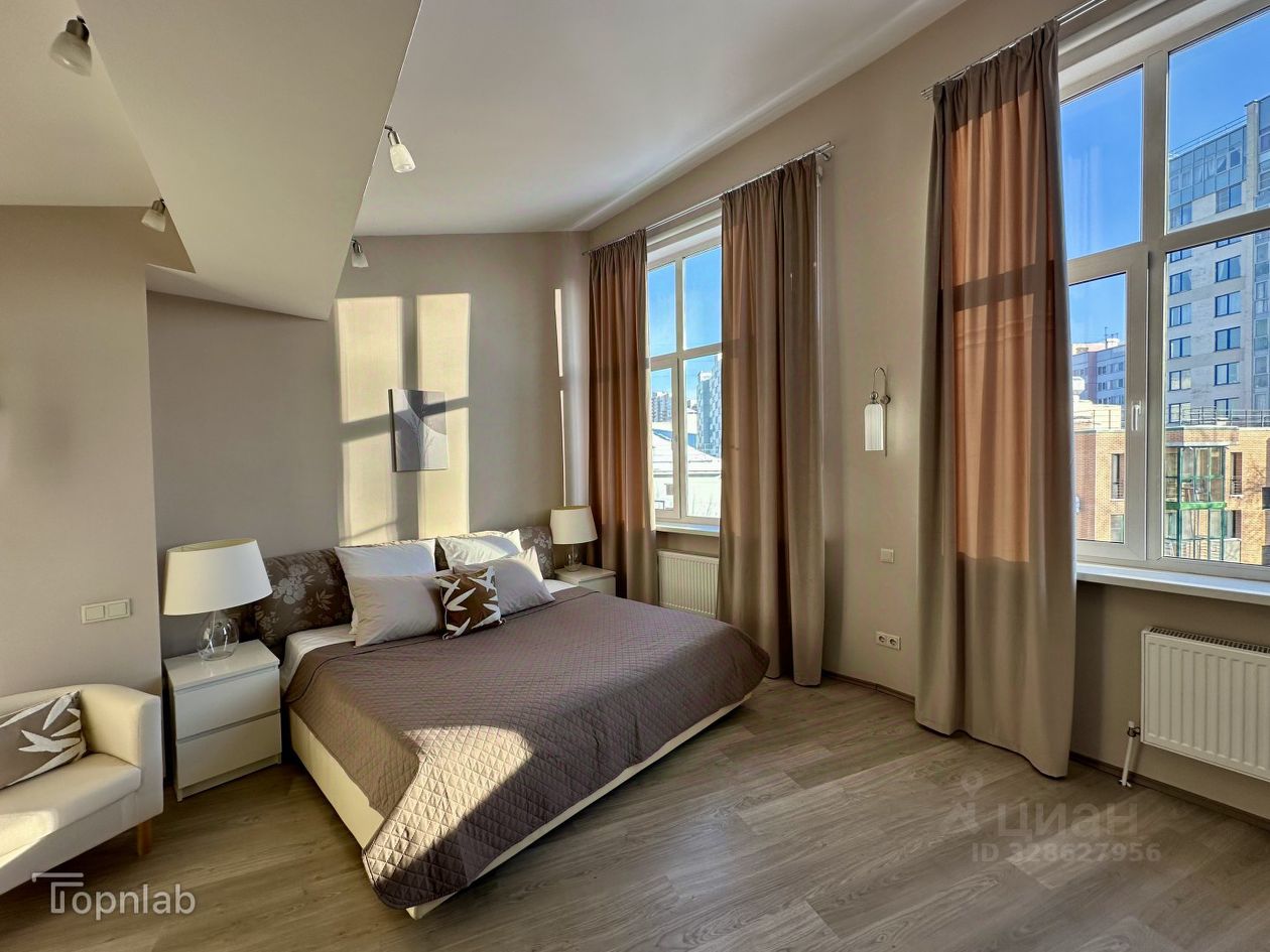 — высокие потолки и крупные окна