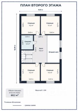 2 этаж: 4 светлые изолированные спальные комнаты, отдельный просторный санузел с ванной и свободный, залитый естественным светом холл.