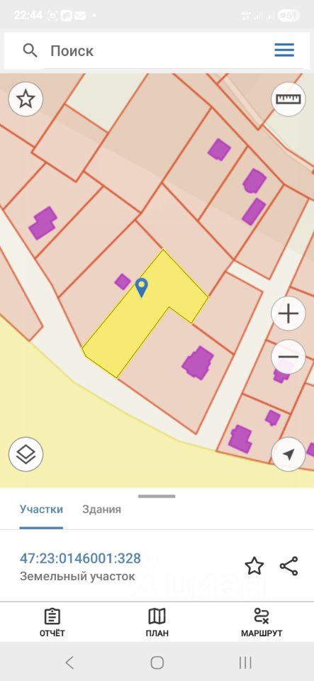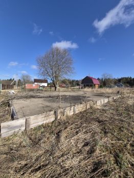 Общая площадь участка 20 соток, форма участка правильный многоугольник. Участок огорожен по периметру сеткой-рабицей. Есть фундамент, плита под будущий гараж или дом, размеры 8*11, толщиной 250 мм, с выводами коммуникаций.
