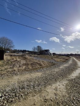 Электрический столб со счетчиком напротив участка. Магистральный газ по улице проложен. Заезд на участке дополнительно отсыпан щебнем.