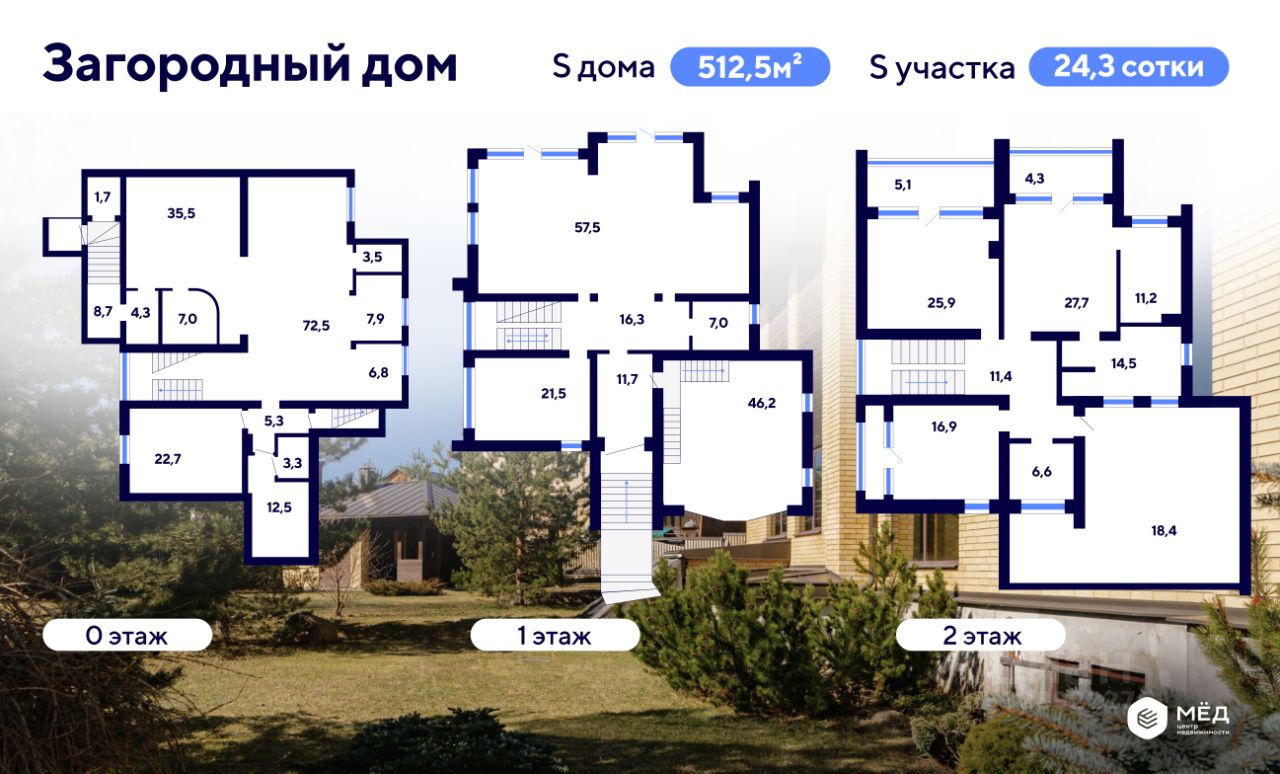 - Два этажа и подвал, общая площадь 512,5 кв.м, терраса 18,4 кв.м. Подчистовая отделка - белый лист для Ваших дизайнерских экспериментов.