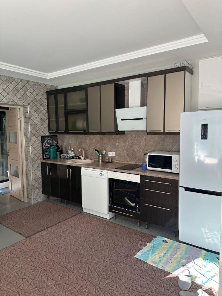 1 этаж: кухня-гостиная 25 кв.м, кухонный гарнитур с посудомойкой, встр. варочной панелью, холодильник, стиральная машина-автомат.