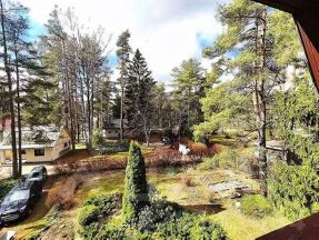 На участке: гараж с баней и комнатой отдыха на втором этаже. Дом, небольшой огород, сосны, ели, туи, берёзка.