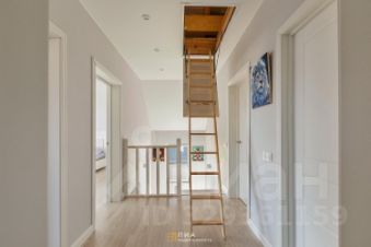 Удобная деревянная лестница связывает этажи, всё пространство работает на комфорт повседневной жизни.