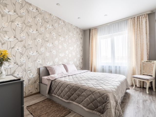 Комфортная двуспальная кровать 160х200 с ортопедическим матрасом и диван-кроватью в спальне. Размещение: 2+1 персоны