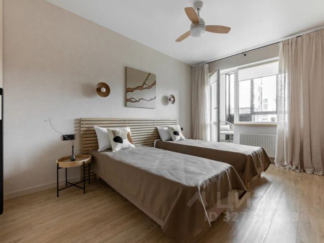 В комнате двуспальная кровать 160*200 и диван-кровать 160*200, на кухне диван со спальным местом 140*190.