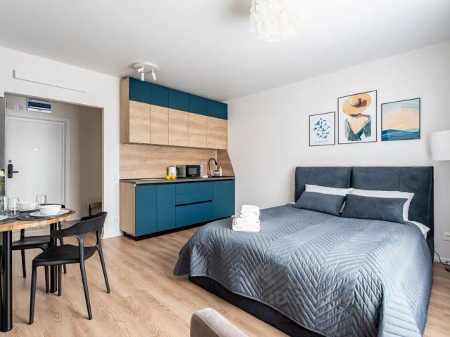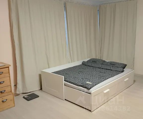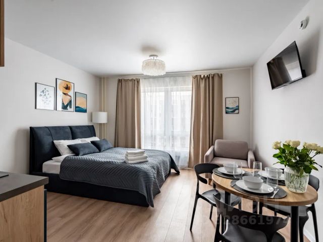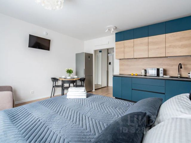 В нашей студии спальное место уютно отделено от кухни зонированием со шторами, а высокие потолки 3.5 метра добавляют больше воздуха и пространства. Для вашего комфортного сна мы выбрали очень приятное к телу постельное белье, ортопедические подушки и спальное место 140 см от аскона.