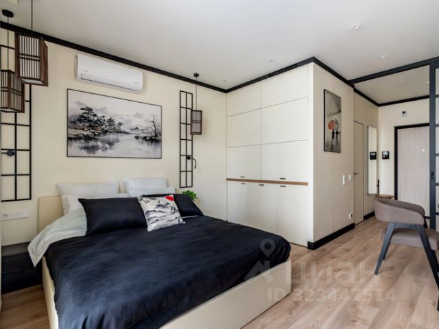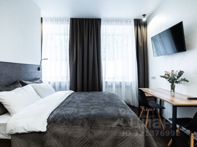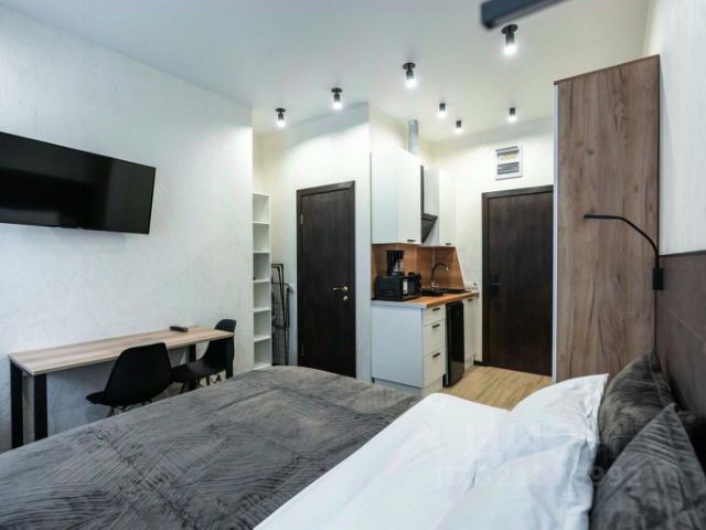 В спальне удобная двуспальная кровать с ортопедическим матрасом; вместительный шкаф для одежды, телевизор со SMART-TV.