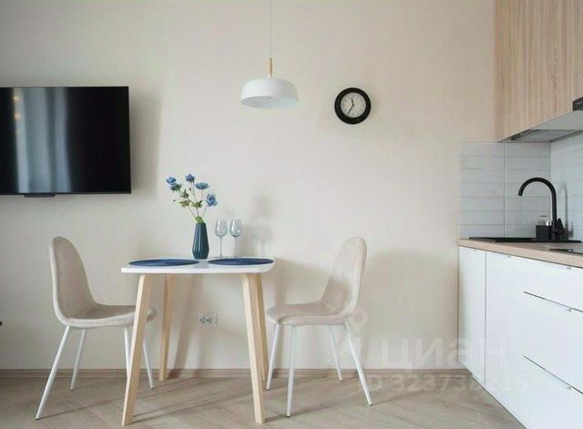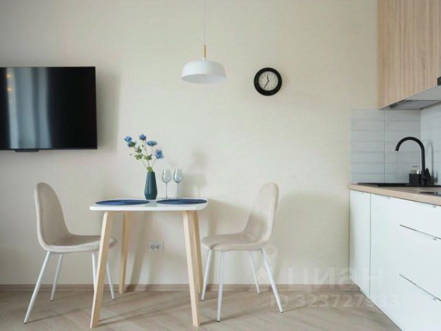 В гостиной роскошный диван, который раскладывается в полноценную двуспальную кровать, телевизор со SMART-TV, обеденная и кухонная зона.