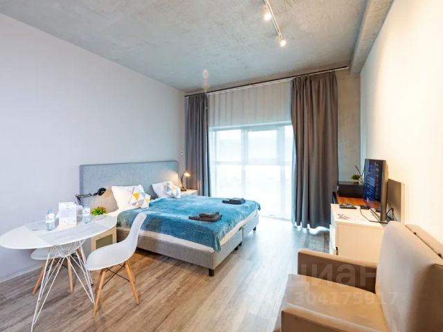 Современная студия в стиле лофт с большими окнами в пол и панорамным видом на Неву, Газпром Арену и Лахта башню. Идеально для романтических встреч, деловых поездок и семейного отдыха!
