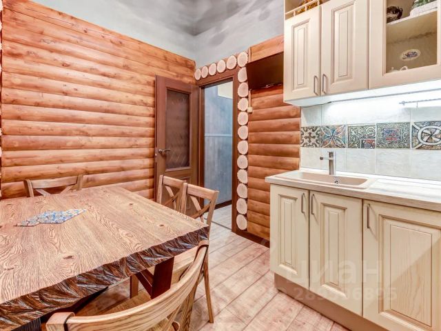 Кухня из натурального дерева, наличие посудомоечной машины и кофеварки.