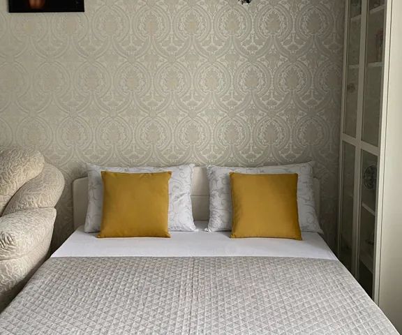 В квартире две раздельные комнаты: спальня и кухня-гостиная