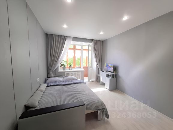 Комната с четким зонированием, в которой двуспальная кровать (спальное место 160*200) и раскладной диван (спальное место 140*200)