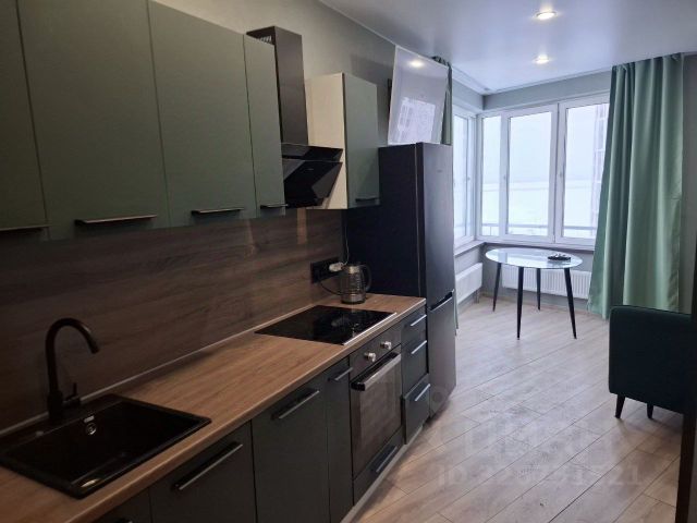 Просторная светлая кухня-гостиная с выходом на просторную застекленную лоджию.