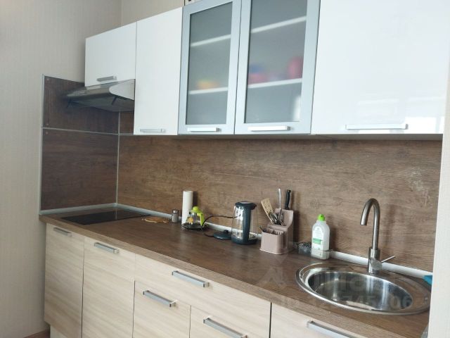 Кухня-гостиная сделана как небольшая уютная комната , где можно не только приготовить еду, пообедать, принять гостей, но и уединиться в комфортной обстановке. На 10 кв.м есть удобный раскладывающийся диван, второй телевизор, красивая мебель, большой холодильник с морозилкой, духовка, индукционная плита, вытяжка, СВЧ и чайник. Есть вся посуда для приготовления и столовые приборы. А различные варианты освещения позволят создать максимально комфортную обстановку и для праздничного обеда и для романтического ужина.