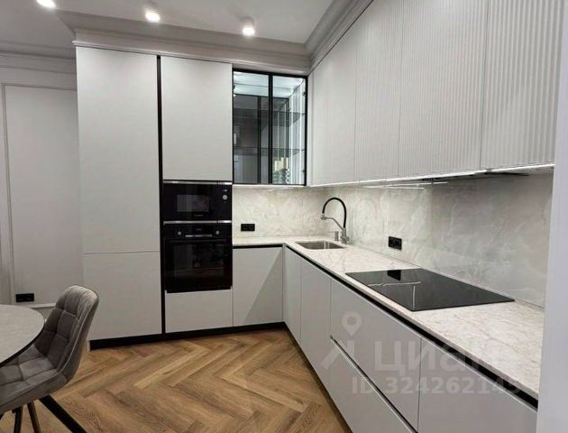 Кухня-встроенная техника: посудомоечная машина, стиральная машина, вытяжка, дух.шкаф, эл. вар. панель, стол обеденный раскладной, чайник, полноценный комплект кух. утвари.
