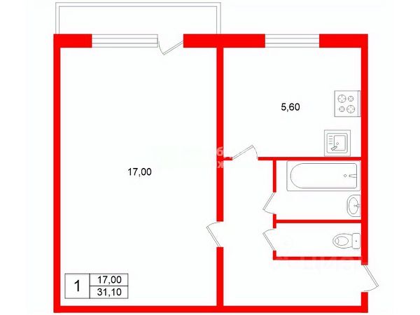 • ✓ В базе Циан 1 1-комнатных квартир с евроремонтом на улице Купчинская в Санкт-Петербурге