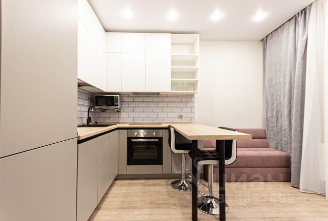 Комнату-трансформер вы можете настроить под себя — кровать убирается в стену, стол складывается, стулья штабелируются. Современным дизайн-решениям сопутствуют технически отработанные инженерные — регулируемые тёплые полы, настраиваемое освещение, душевая со встроенным трапом и инсталляция Tece, ручной душ на 3 режима Villeroy&Boch, встроенная в нише кухня с холодильником с морозильной камерой и микроволновая печь Gorenje с функцией гриль и различными режимами, индукционная варочная панель.