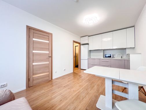 Квартира находится на 17 этаже дома 5/6 по улице Дыбенко. Это так называемая евродвушка, которая отличается просторной планировкой. Из окон открывается великолепный вид на Октябрьскую набережную и Неву. В квартире есть всё необходимое: в одной комнате разместился кухонный уголок с холодильником, диван, стол и телевизор диагональю 55 дюймов. Во второй комнате установлена кровать и комод, стол, стул. Из этой комнаты есть выход на балкон. В квартире также есть: стиральная машина, микроволновая печь, чайник, утюг. и телевизор диагональю 55 дюймов, шкаф, стол. От собственника пожелания: наниматели -один или два человека, люди умеющие бережно относится к переданному имуществу, без вредных привычек и без животных. Цена: найм + КУ + Залог + Агентская комиссия. Максим. Сдается 1-комнатная квартира с евроремонтом на улице Дыбенко в Санкт-Петербурге.