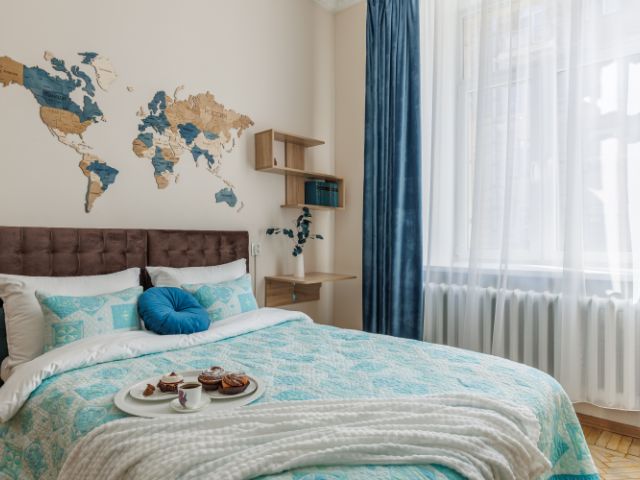 В квартире большие окна, все свежее и новое.Кухня оборудована всей необходимой техникой - телевизор 68 дюймов, электрокамин, варочная поверхность, духовой шкаф, микроволновка, посудомоечная машина, холодильник с морозилкой, вся техника Bosh, есть диспенсер для бумажных полотенец, посуда для приготовления - варки, жарки, выпечки, для сервировки еды, столовые приборы, турка для варки кофе.