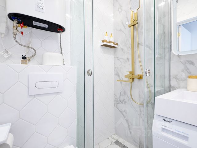 Душ, стиральная машина, чистые полотенца, жидкое мыло для рук, шампунь/гель для душа