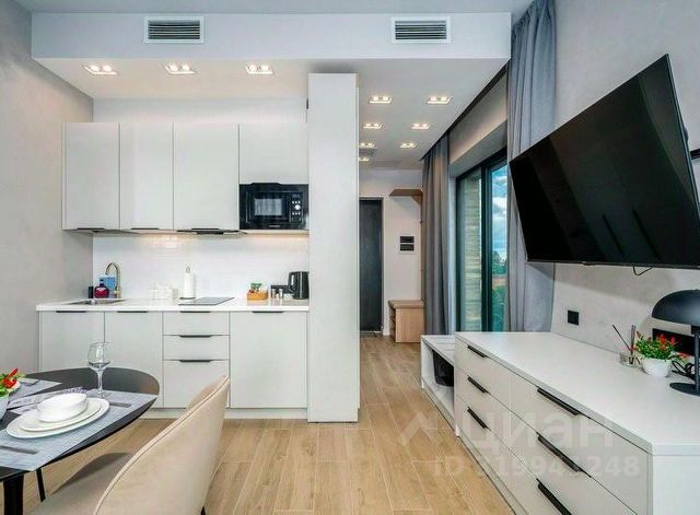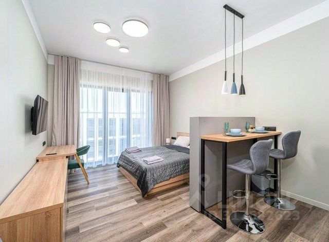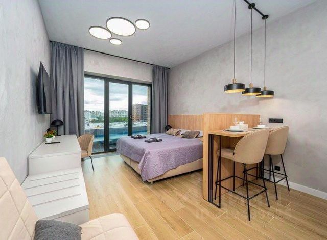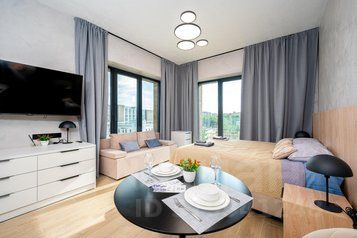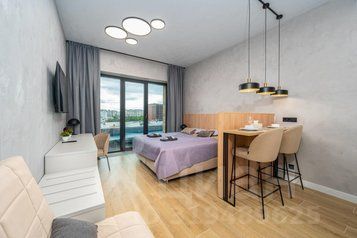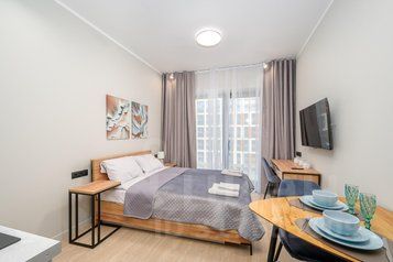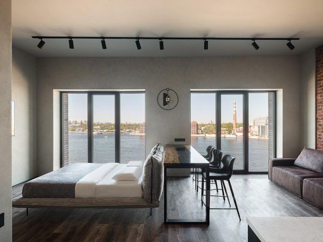 Современная студия в стиле лофт с большими окнами в пол и панорамным видом на Неву, Газпром Арену и Лахта башню. Идеально для романтических встреч, деловых поездок и семейного отдыха!