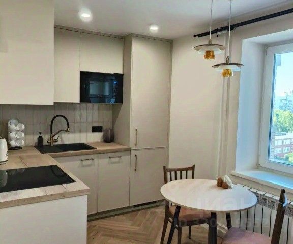 * Кухня с посудой, кухонными принадлежностями, стол барный, барные стулья.