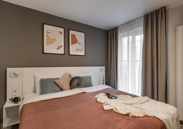 - В местах отдыха: постельное белье на каждого гостя, ЖК телевизор со Smart TV, высокоскоростной Wi-Fi в номере бесплатно, зеркало в полный рост, шторы блэкаут, кондиционер.