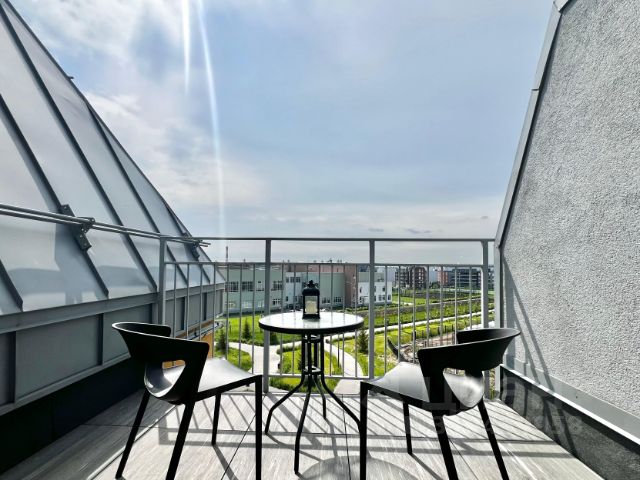 ЛОДЖИЯ: вид на город, мягкие стулья, кофейный столик