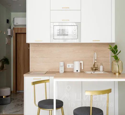 - Бытовой техникой (микроволновая печь, двухкомфорочная варочная плита, вытяжка, холодильник, эл. чайник)
