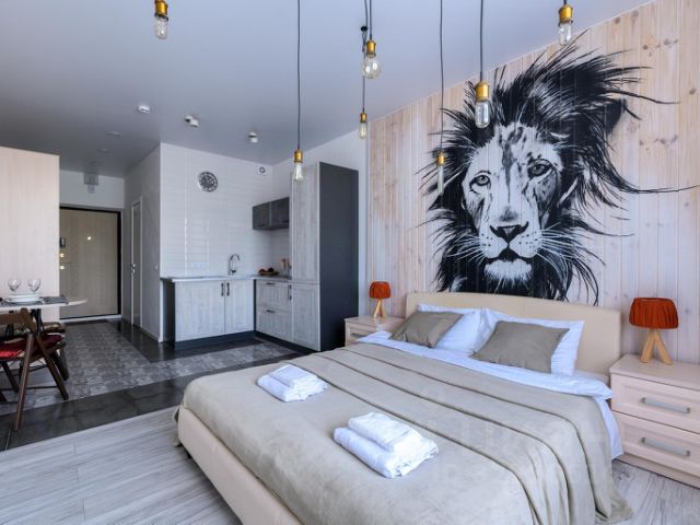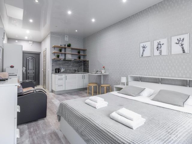 Гости смогут комфортно совмещать отдых, путешествия и работу. В студии есть всё необходимое: двуспальная кровать с ортопедическим матрасом, диван, белоснежное бельё и мягкие полотенца, Wi-Fi, телевизор, кухонный гарнитур, холодильник с морозилкой, индукционная плита, встроенный фильтр для питьевой воды, СВЧ-печь, посуда, столовая группа. Душевая с тропическим душем, стиральной машиной и сушилкой для белья.