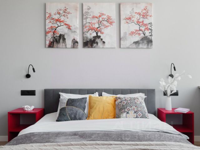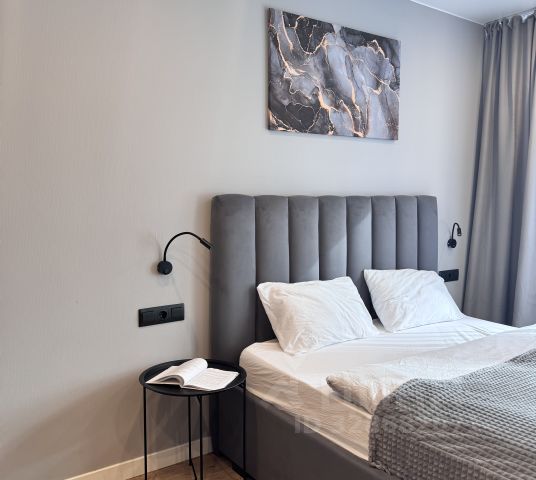 В комнате: большая двуспальная кровать 180х200, раскладной диван, телевизор led, кондиционер, шкаф-купе, рабочая зона, балкон, шторы блэкаут.