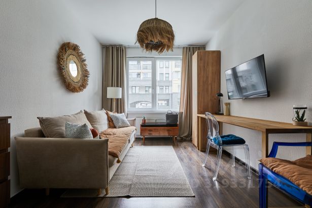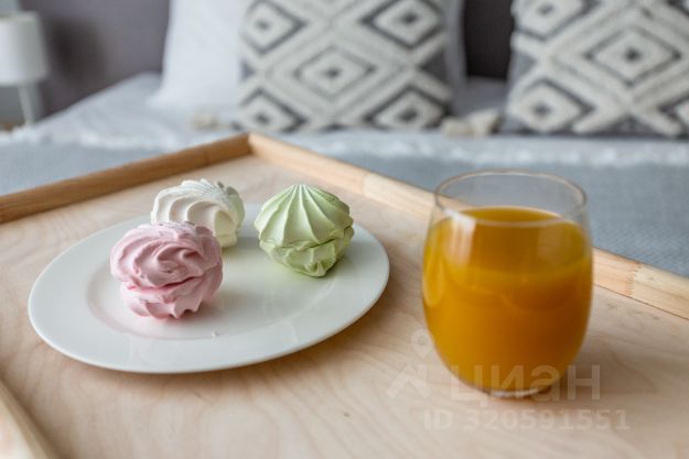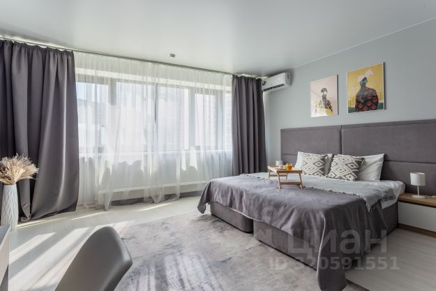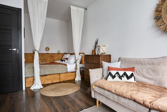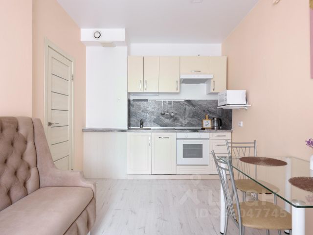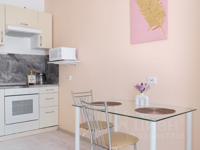 В студии дизайнерский ремонт и есть все необходимое для комфортного проживания. Кухня, укомплектована всем необходимым: плита, холодильник, кофемашина, посуда, микроволновка.