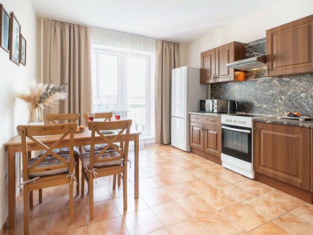 Также в квартире: холодильник, плита с духовкой, микроволновка, ТВ с подпиской OKKO и бесплатными фильмами, стиральная машинка, утюг, гладильная доска, сушилка для белья, фен, чайник.