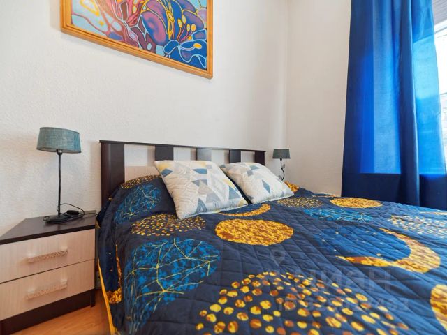 В студии есть двуспальная кровать шириной 140 см с новым жёстким ортопедическим матрасом, шкаф для одежды, стол и 2 стула, а также кухонный гарнитур. Постельное бельё, полотенца, тапочки, мыло, предметы гигиены, салфетки, бумажные полотенца, чай, кофе, путеводители. Есть специальное помещение для стирки со стиральными машинами, утюги и гладильные доски, сушилки, которые можно взять в студию, фен, вентилятор. На окне есть рулонная штора blackout от света и москитная сетка.